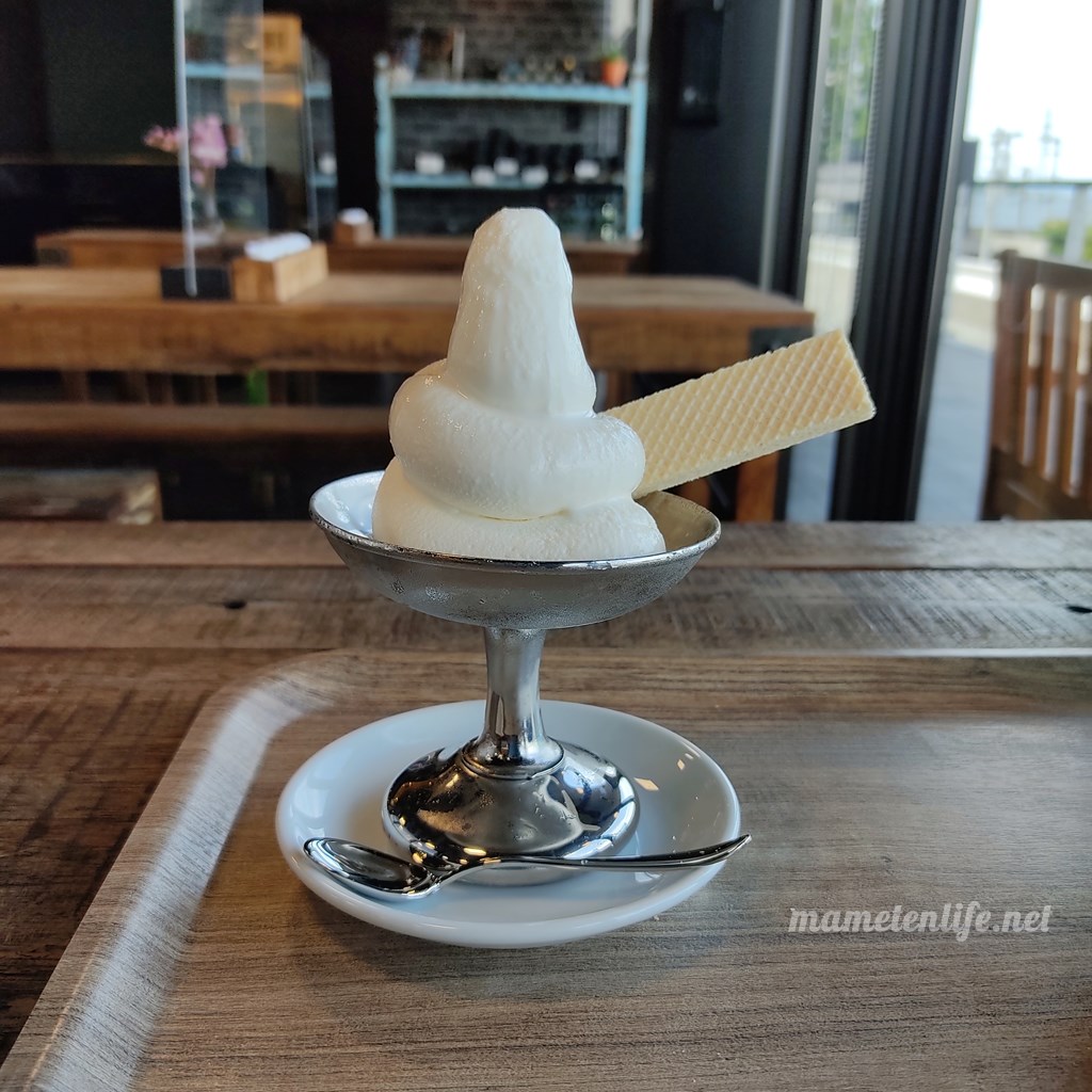 <p>諏訪乳業さんの牛乳を使ったソフトクリームは、こちらのCAFE Smiths’さんだけかも。</p>